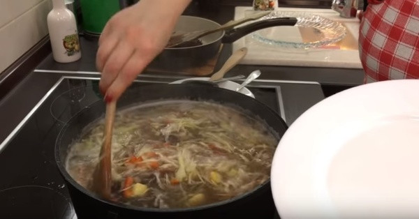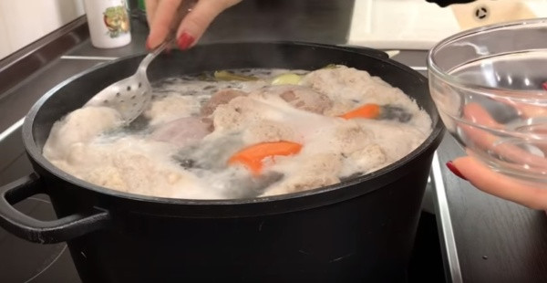 Примечание: После того, как сварился бульон, протрите края кастрюли салфеткой, так как там может образоваться налёт от пены.