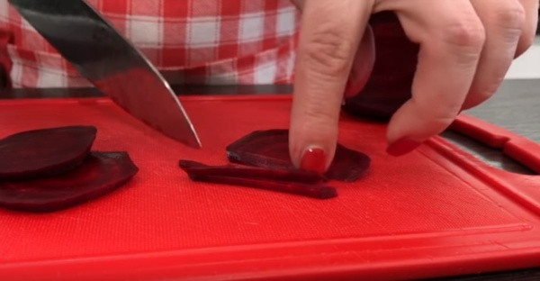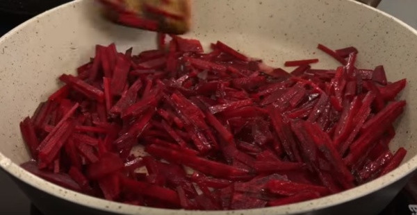 3. Теперь переходим к овощам. Свеклу нарезаем средней соломкой.