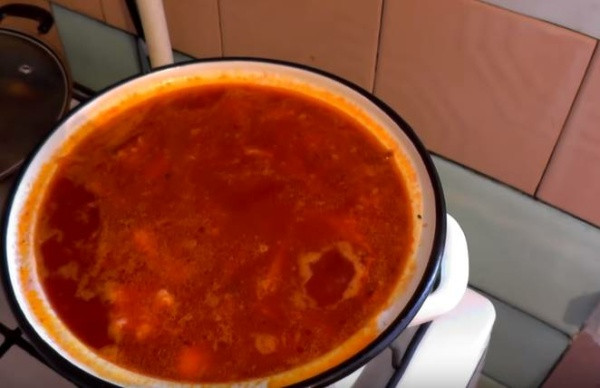 Всё, первое блюдо готово, только обязательно дайте ему настояться. Ещё рекомендуется потомить суп после приготовления на минимальном огне 10 минут под закрытой крышкой. Таким образом смягчатся все запахи специй и горячее получится наваристее.Заправка для борща на зиму