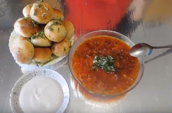 Традиционно борщ принято подавать с чесночными пампушками. Они просто великолепно сочетаются с данным блюдом. Готовятся они в 2 счёта, зато удовольствие от пищи продлится на целый день. Я предлагаю Вам узнать ещё об одном рецепте супа и в добавок о рецепте булочек. Для простоты восприятия прилагаю видео.https://www.youtube.com/watch?v=sElXeYAHJQo