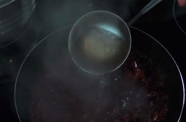 Через время вода в кастрюле испарится её необходимо долить до нужного уровня. Учитывайте, что к общему объёму будет ещё вноситься остальные ингредиенты.