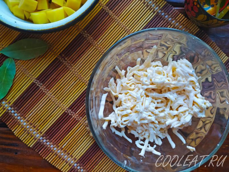 Шаг 11. Пока всё варится и тушится, натрём плавленные сырки.