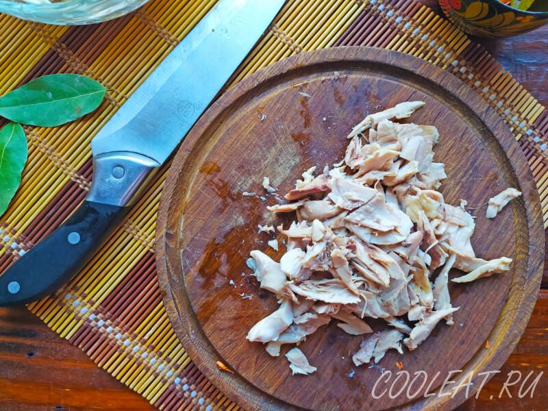 Готовить я сегодня буду на курином бульоне, и часть мяса также положу в блюдо. Однако, Вы можете использовать и другие типы мяса, например, говядину или свинину. Скажу даже больше – можно всё сварить на обычной воде. Получится не особо жирно, но вкус не сильно потеряет свои краски.