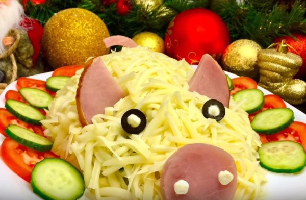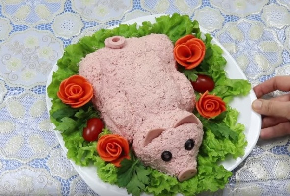 Салат на Новый 2019 год в виде свиньи — получается очень вкусный