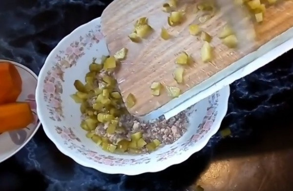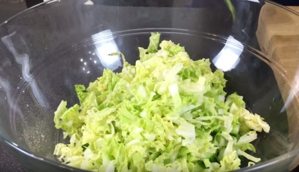 2. Капусту также не крупно шинкуем и отправляем к огурцам.