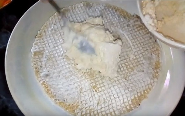 4. Теперь необходимо смешать майонез со сметаной, таким образом у нас получится соус, которым мы будем смазывать коржи.