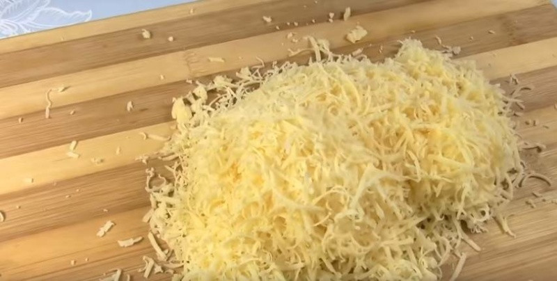 2. Сыр также трём на мелкой тёрке. Сразу говорю, что экономить на этом продукте не надо, т. к. он придаёт нежность салату.