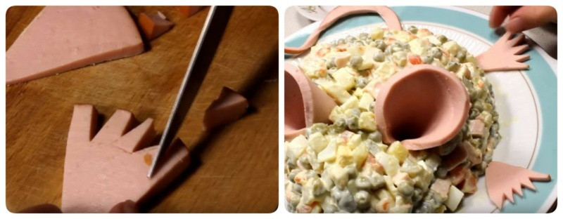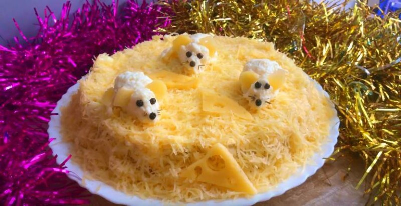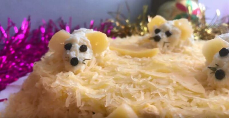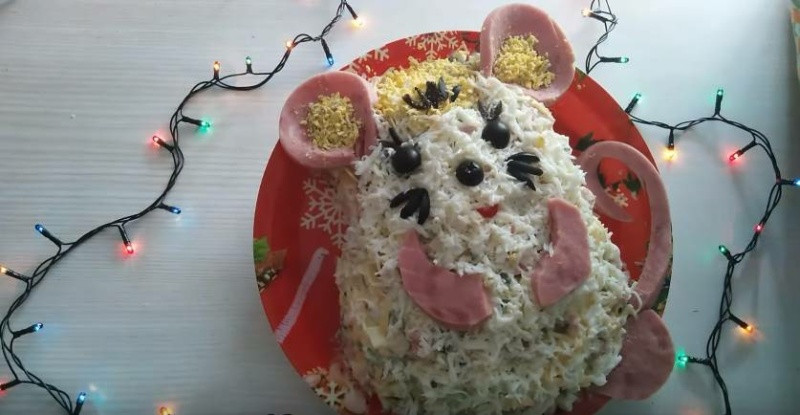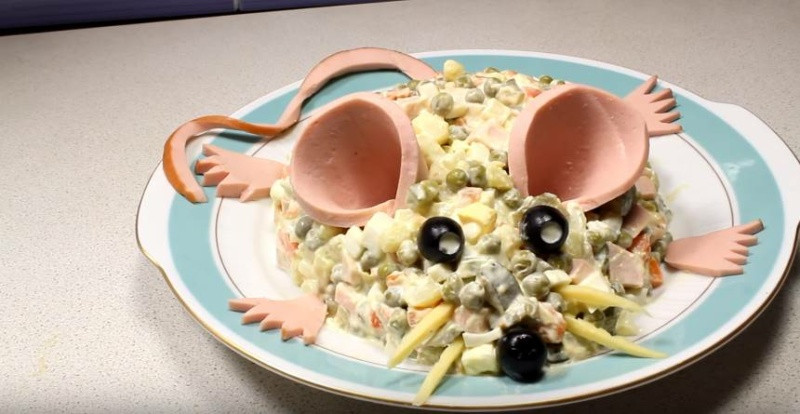 Новый и интересный салат Оливье в виде крысы (мыши) на Новый год 2020