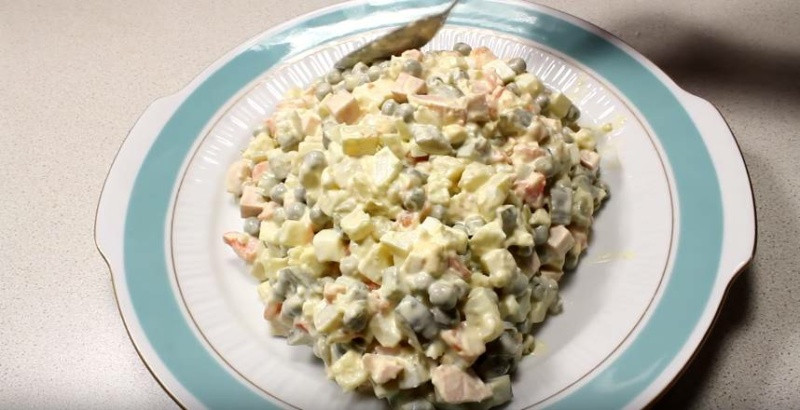 Готово! Можете подавать Оливье к столу, и не важно будет он детский или взрослый, ведь данную закуску сметут в первую очередь. Не поленитесь приготовить на праздник подобное блюдо – гости будут в восторге.