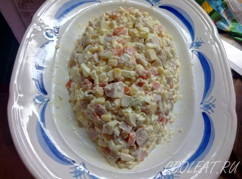 Не любите кукурузу – не добавляйте. Попробуйте заменить её ананасом, а плавленный сыр отлично заменяется твёрдым.