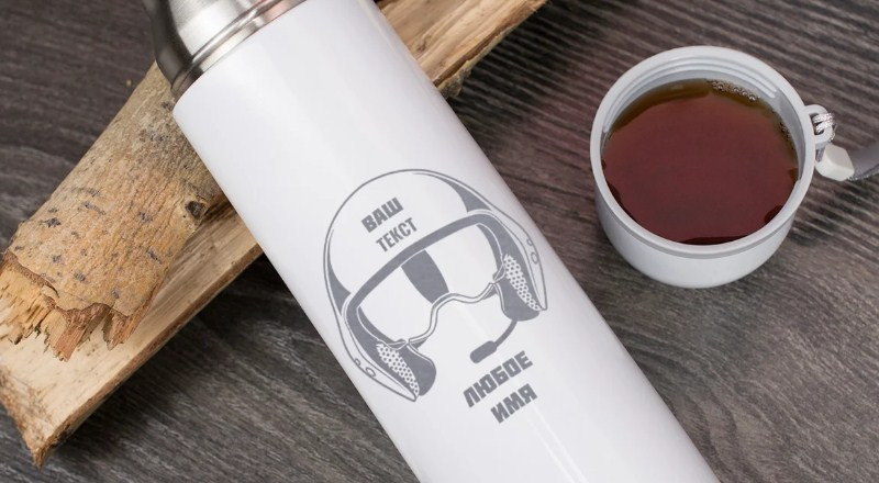 8. Термос. Отличный подарок, который будет согревать по пути на работу ранним холодным утром. Заказать его можно с любым принтом, а так же сделать именным.
