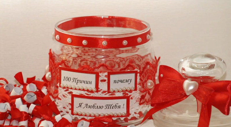 Подарок не обязательно покупать. Если Вы обладаете хорошей фантазией и мастерством рукоделия, то вариант с презентом своими руками будет в самый раз. Такой сюрприз будет нести в себе частичку души и каждый день напоминать, на сколько сильные Ваши чувства. Используйте все свои навыки и креатив для создания сюрприза. Предлагаю несколько не сложных идей, которые можно воплотить в жизнь.1. Валентинка. Она может быть любого размера и с разным наполнением. Напишите жаркое пожелание или сочините стих. Очень интересно будет ее дополнить Вашими совместными фотографиями.