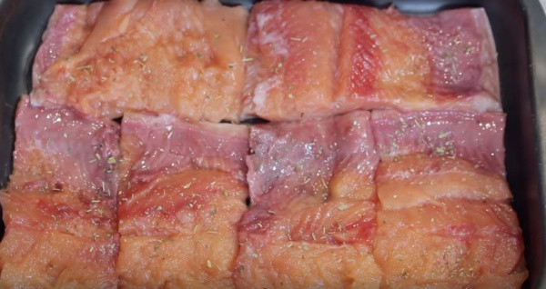 1. Рыбу разделайте на филе и максимально удалите все кости. Нарежьте подготовленную филейную часть на порционные кусочки.