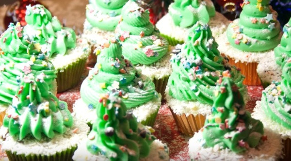 Творожно-кокосовые кексы на Новый год с масляным кремом «Ёлочка»