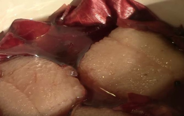 Закуска готова! Рекомендую покупать куски с большим количество мясных прожилок, при поедании такого блюда будет ассоциация с бужениной.Рецепт приготовления варёного сала с черносливом на 1 литр воды