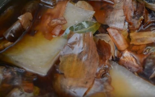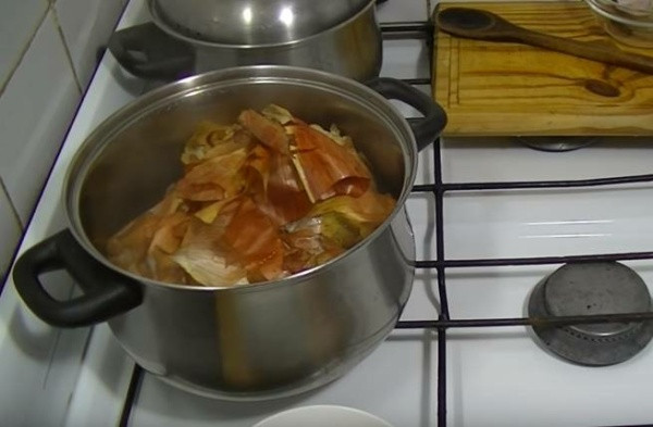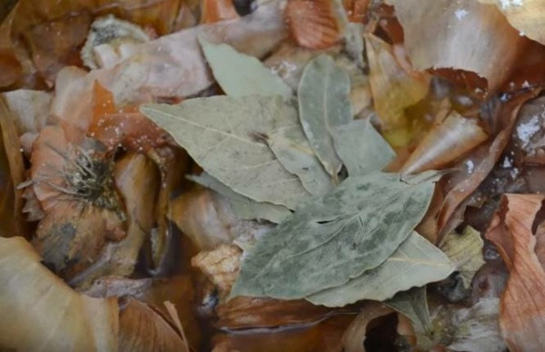 - Кладите в раствор больше луковой шелухи, чтобы цвет у готового продукта был насыщеннее.