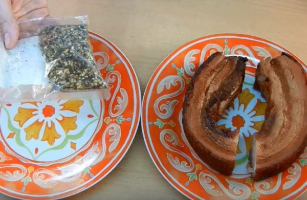 Для того чтобы закоптить какой-нибудь продукт, не обязательно в наличии иметь коптильню. Сейчас стало популярно пользоваться жидким дымом. Да и многие производители, копченой рыбы или мяса, пользуются именно этим вариантом. В нашем случае он подойдёт для копчения сала. Плюсом этого способа является доступность, потому что, каждый может купить в магазине необходимое средство и приготовить ароматное блюдо в домашних условиях.