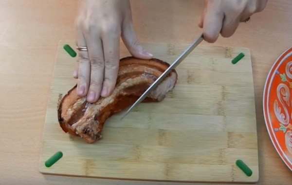 1. Изначально лучше разрезать сало на несколько кусочков. Это делается для того, чтобы оно быстрее просолилось. Можно оставить и большой шмат, но оно дольше будет лежать в растворе.
