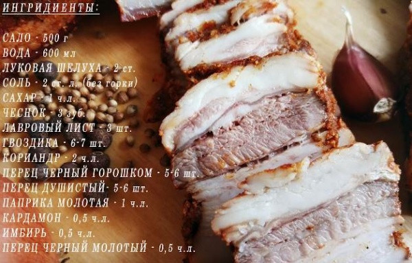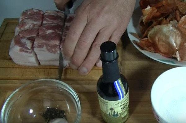 Сало в луковой кожуре с жидким дымом в домашних условиях