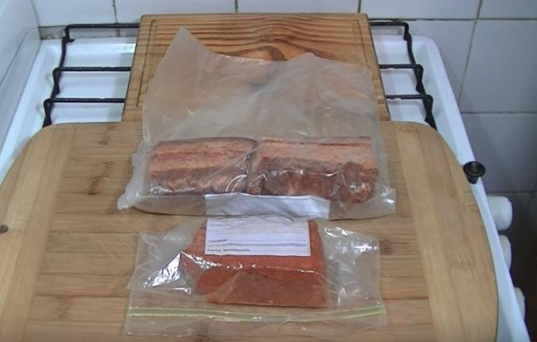 6. Осталось нашему блюду немного созреть. Для этого запаковываем кусочки продукта в пакет и убираем в холодильник на 3-5 дней. После этого отправляем закуску в морозилку, где храним до нужных времен.