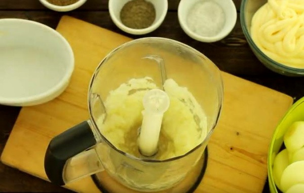1. Очищаем лук. 500 г нарезаем полукольцами шириной в 1 см и пока откладываем в сторону. Остальные 200 г овоща необходимо измельчить на блендере, до кашеобразного состояния. Далее эту кашицу смешиваем с майонезом.