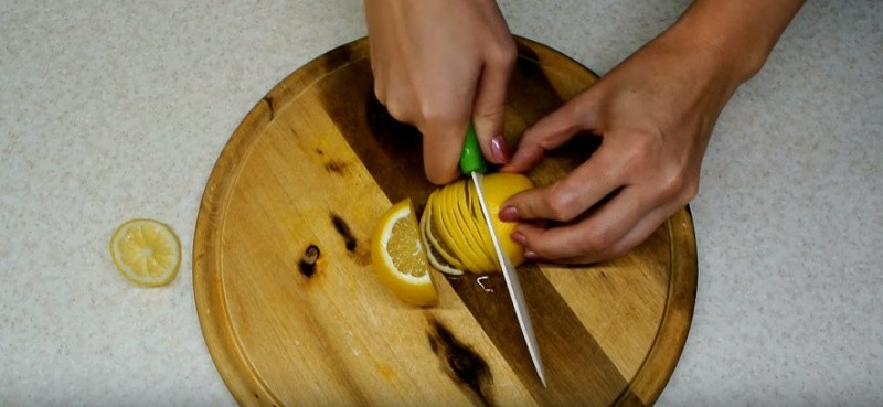 5. Подготавливаем лимон к варке. Его нужно помыть и нарезать тонкими дольками. Если попадаются косточки — их удаляем, чтобы не испортить готовое лакомство.