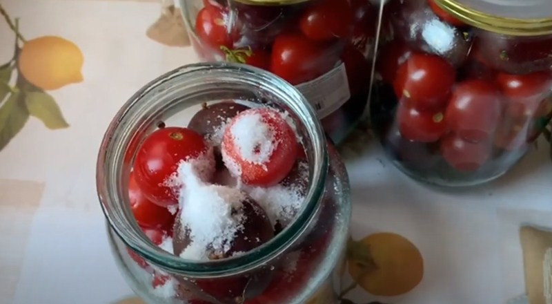 Сейчас очень многие выращивают на своих грядках помидоры совершенно разных сортов, и черри не является исключением. Поэтому если у вас появились налитые плотные маленькие томаты, предлагаю их закрыть вместе с чесноком и зеленью.