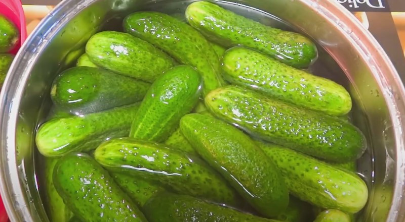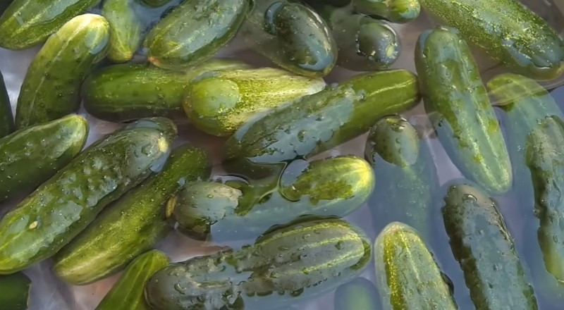 - Огурцы перед консервацией всегда лучше замачивать. Это поможет им сохранить хрусткость.
