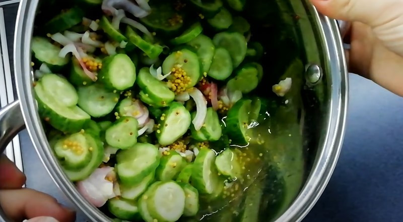 Вкусный зимний салат из огурцов с горчицей