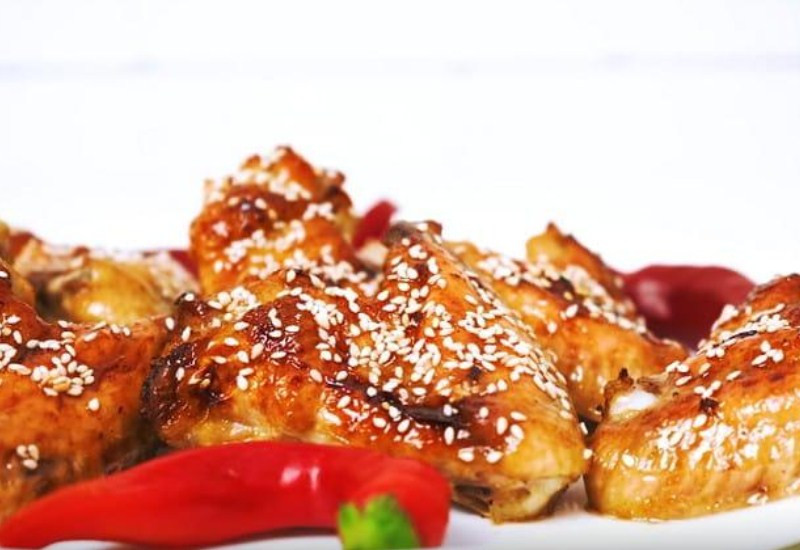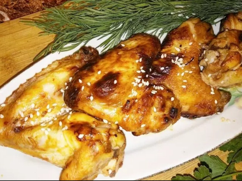 Быстрые крылышки в медово-горчичном соусе с кунжутом