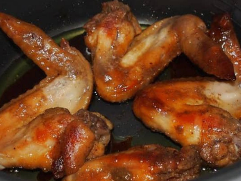 3. Слегка убавив огонь под уже поджаренными крылышками, вливаем в сковороду соус и тушим до карамелизации каждого из кусочков.