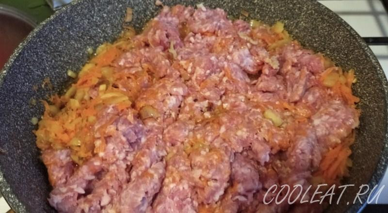 3. Отправляем к ним говяжий фарш и обжариваем на протяжении 1 часа.