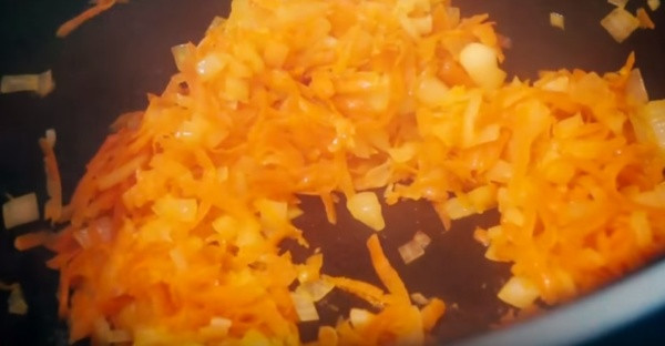 1. Итак, в первую очередь крошим мелко лук и натираем морковь.