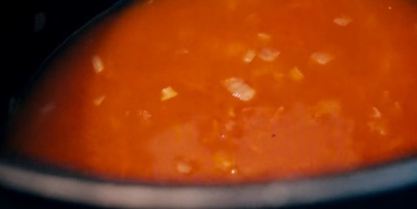 5. Как только овощи с томатной пастой обжарились к ним добавляем 1 стакан воды, все перемешиваем и накрываем крышку мультиварки, пускай соус немного покипит.