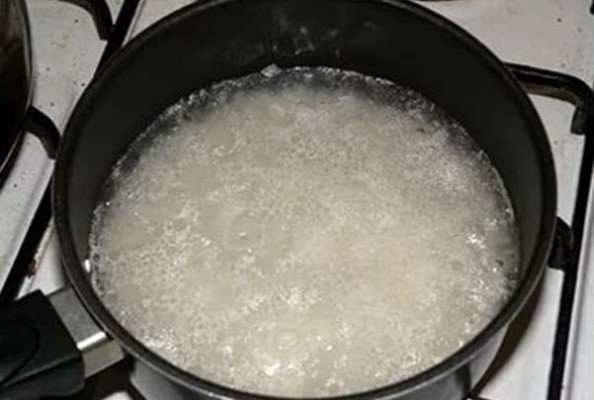 1. Для начала залейте рис кипятком примерно на минут 7, таким образом крупа станет мягче и быстрее приготовится.