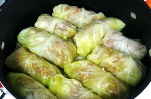 8. Начинку в голубце надо уплотнить, а после закрыть, как показано на фото. Заворачиваем все голубцы.
