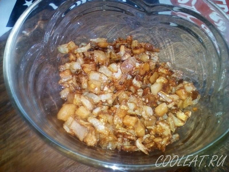 Я решил сделать несколько вариаций начинок, поэтому часть лука просто обжарил, а другую с добавлением сала. Получается у меня ещё будет начинка со шкварками. Очень рекомендую попробовать, потому что выходит просто восхитительно.
