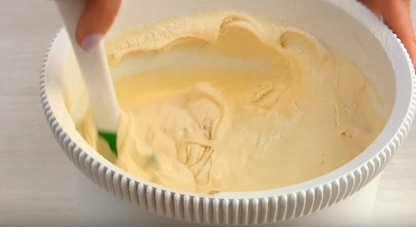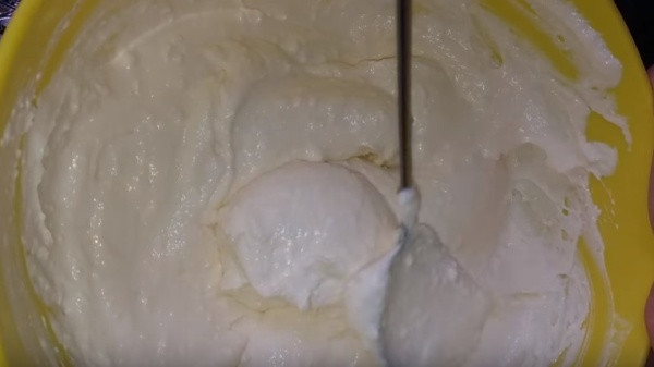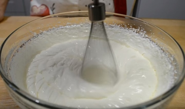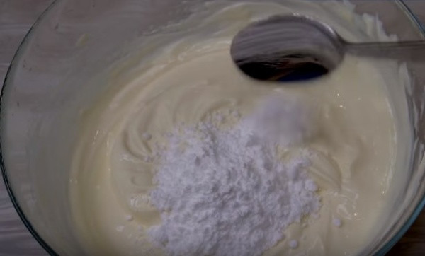 8. Для крема в сметану добавляем сахарную пудру и перемешиваем, готово.