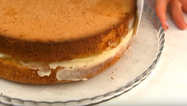 Примечание: Оставьте немного сметанного крема для того, чтобы смазать потом сам торт.