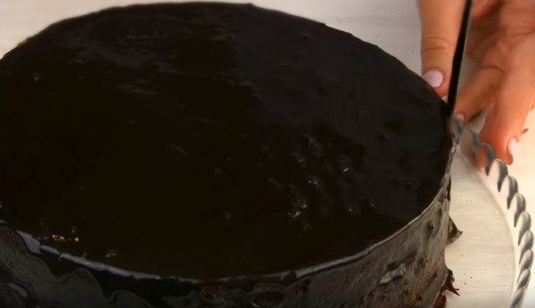 Поливаем торт глазурью и отправляем его в холодильник, чтобы пропитался.