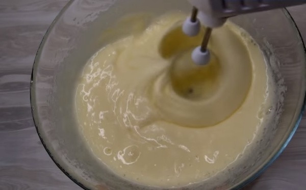 Совет: Если у Вас не мощный миксер, то вначале взбейте белки с сахаром до устойчивых пиков, а после отдельно желтки (до побеления), и аккуратно смешайте эти 2 компонента.