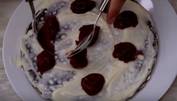 Если Вы не пробовали этот торт, то настоятельно рекомендую приготовить его. Это нежнейшее сочетание вишни и сметанного крема. Кстати, использовать также можно бананы, вишня используется в классическом рецепте.