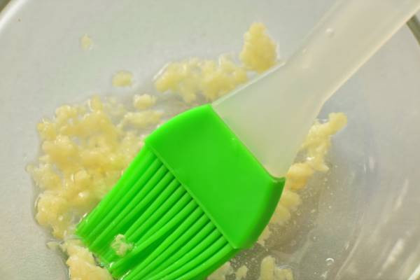 5. Когда пампушки испекутся, вынимаем их из ёмкости и смазываем чесночной пропиткой. Чтобы её сделать, соединяем растительное масло и передавленный через пресс чеснок. При желании можно присыпать ещё укропом.