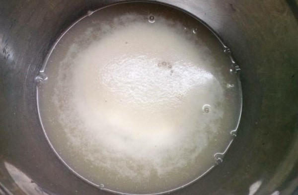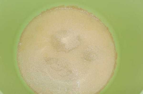 1. В ёмкость где будем замешивать тесто вливаем тёплую воду (не горячую). К ней отправляем щепотку соли, сахар и дрожжи. Всё перемешиваем и даём «опаре» постоять минуты 2, чтобы дрожжи начали активно работать.