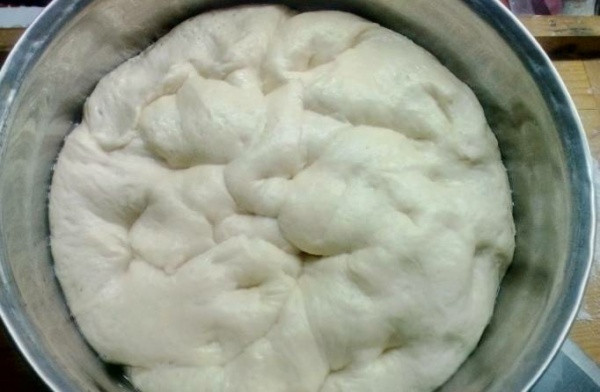3. После первого увеличения заготовки, её необходимо обмять, так сказать, опустить. Повторяем этот процесс и во второй раз. Когда тесто увеличится в объёме уже третий раз, то можно доставать его и вываливать на стол, заранее смазанный маслом.