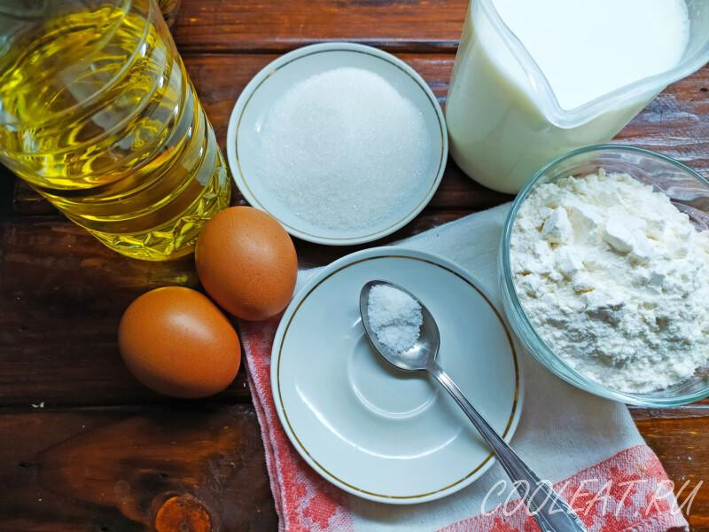 Все продукты в сегодняшнем рецепте очень доступные и обязательно найдутся в Вашем холодильнике. Хоть любой из них можно заменить, но я всё же советую задействовать только нужные продукты. Просто каждый ингредиент играет свою, важную роль. С мукой я думаю тут всё понятно, а вот молоко или яйца – это уже важные составляющие, от которых зависит вкус будущих изделий.