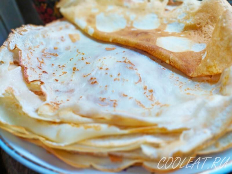 Точнее сказать, от того насколько жидкая получится заготовка, зависит толщина будущих блинчиков. Но! Стоит помнить о том, что чем жиже тесто, тем тяжелее будет переворачивать мучное изделие. Поэтому придерживайтесь тех пропорций продуктов, которые я указал и будет Вам счастье :)