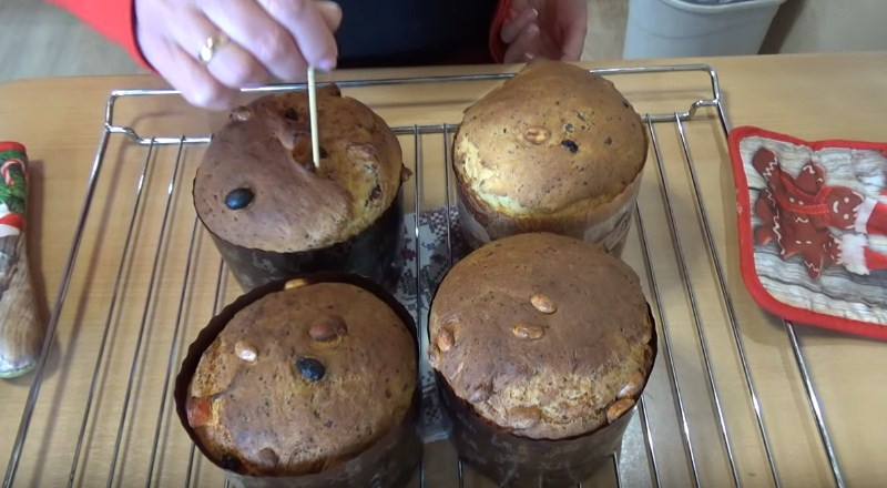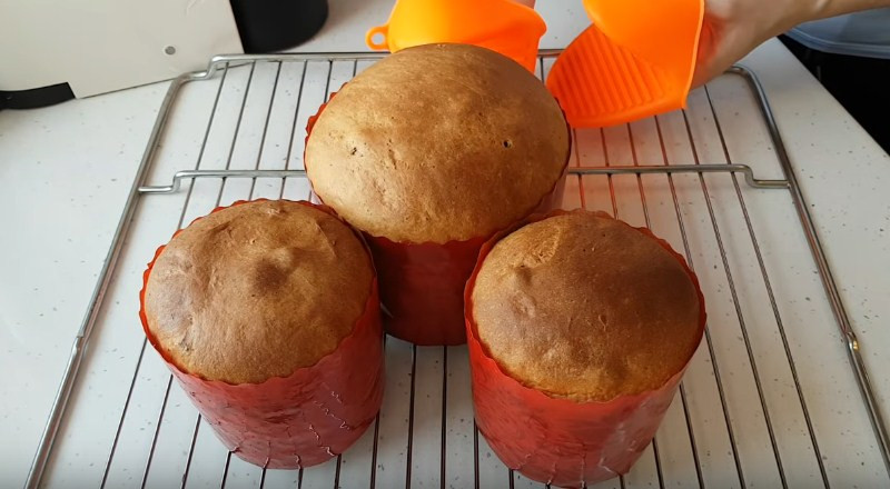 12. Спустя время отправляем куличи в разогретую духову до 180 °С на 25-30 минут. Время выпекания зависит от размера угощения. В рецепте используются формы: 2 шт в диаметре 9 см, в высоту 9 см и 1 шт в диаметре 12 см, в высоту 9 см. Проверяйте готовность деревянной шпажкой.