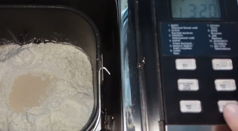 2. Далее устанавливаем чашу со всеми ингредиентами в хлебопечь и выставляем параметры: время выпекания 3 ч. 20 мин., интенсивность зажаривания корочки — средняя, вес — 900 г. Затем нажимаем кнопку СТАРТ и ждем характерного сигнала, который даст понять,что пора всыпать цукаты.