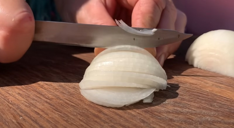 Чтобы лук не щипал глаза при нарезке, замочите его на 10-15 минут в холодной воде.